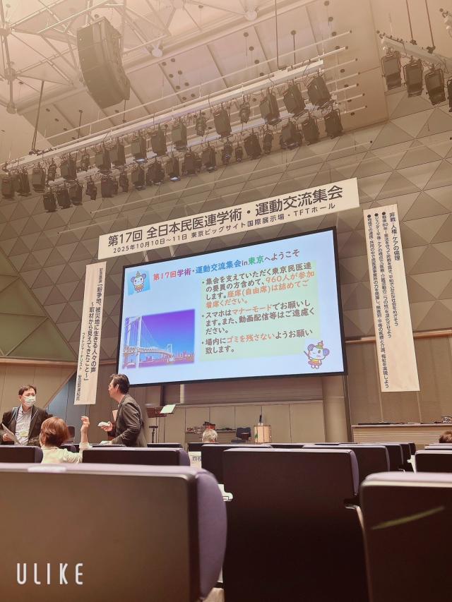 2025年10月10日 (日)、11日 (金)に東京ビックサイトで第17回全日本民医連学術運動交流集会が開催され、臨床工学科の五十嵐一生が参加しました。