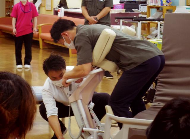10月10日に本間病院デイケアにて、福祉用具の研修会を開催しました。講師にグリーンオークさんをお招きし、各職場から24名が参加しました。