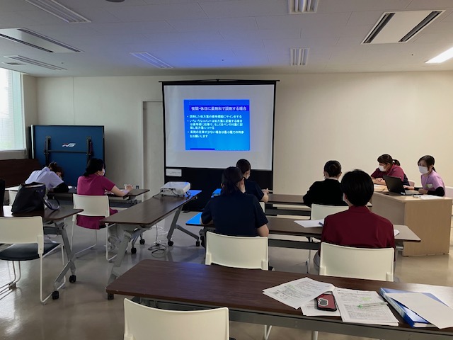 入職して半年が過ぎ、注射業務や患者様への内服の介助など、薬を取り扱う機会も増え、「これは忘れてはいけない❗❗」「ここは重要❗❗」などポイントについて再確認をする研修✍となりました。受講者たちは、講師の話を真剣に聞き、学ぼうとしている姿✨を見て、一緒に働く仲間として心強さを感じる事ができた時間となりました。