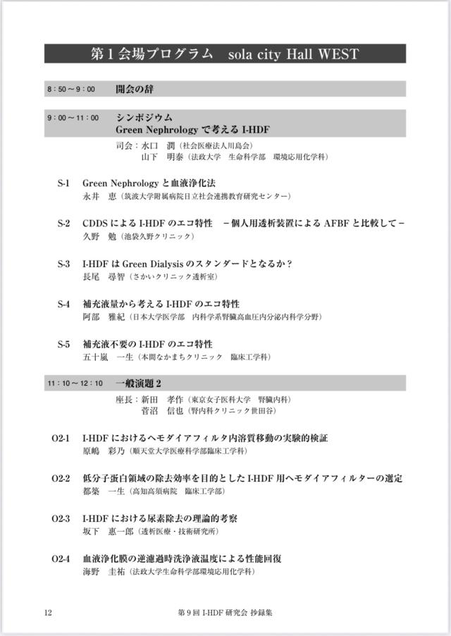 五十嵐一生はシンポジウムの「Green Nephrologyで考えるI-HDF」で「補液不要のI-HDFの特性」について講演しました。