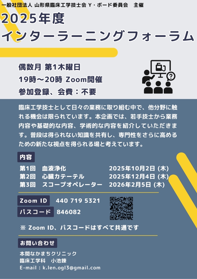 2026年2月6日 (木) 19時からwebで第3回インターラーニングフォーラムが開催され、臨床工学科の五十嵐一生、池田奈摘、清川恭子、舟生広之、斎藤稔也、今野忍、小池錬、今井沙紀の6人が参加しました。