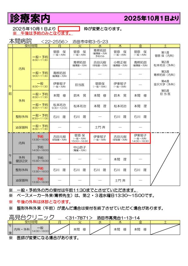 • 担当医が手術や学会出席等のため休診となる場合があります。