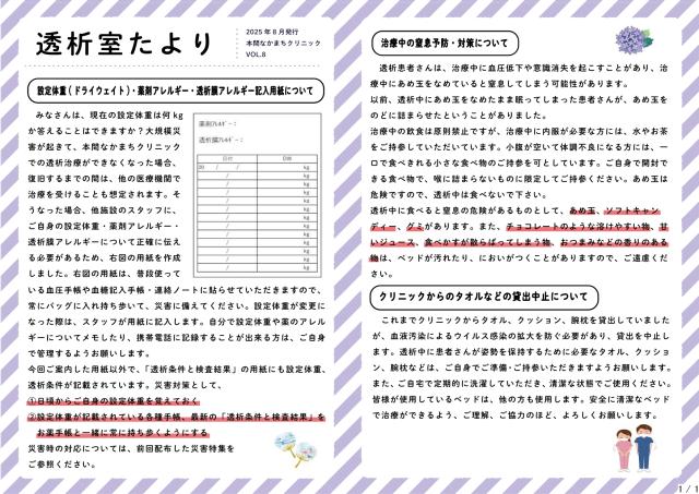 透析室たよりのバックナンバーです。各号の画像をクリックするとPDFで開きます。